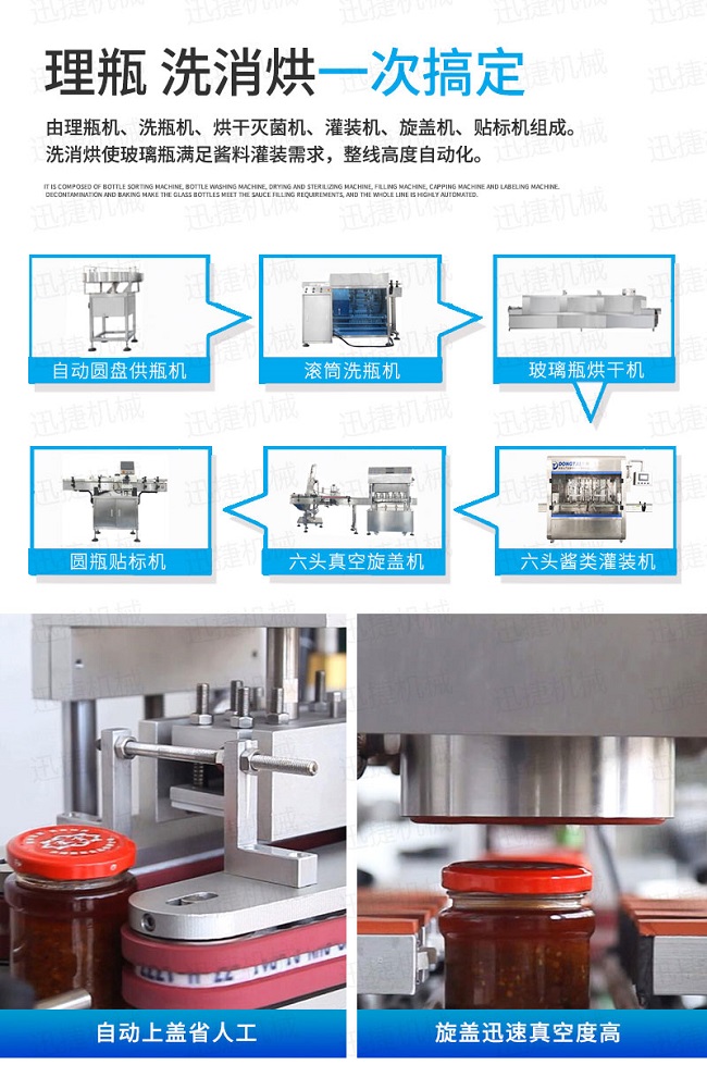 自動(dòng)化醬料灌裝旋蓋貼標(biāo)生產(chǎn)線優(yōu)勢(shì):