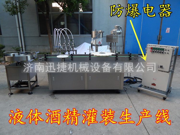 該機是一種由微電腦(PLC)可編程控制,光電傳感,氣動執(zhí)行于一體的高新技術灌裝設備。全自動防爆酒精灌裝機是一款專業(yè)的酒精包裝機械,其可對各種酒精如電子酒精、無水酒精、香水酒精、食用酒精、玉米酒精等液體易燃產(chǎn)品。廣泛適用于酒精、化工、化妝品、日用化工用品、各種粘稠液體等的扁瓶、橢圓瓶類容器包裝,是完全符合GMP標準生產(chǎn)規(guī)范的較包裝設備。