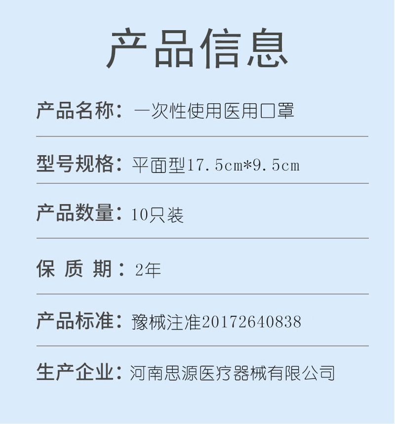 藍色醫(yī)用口罩 清新版 10片/包