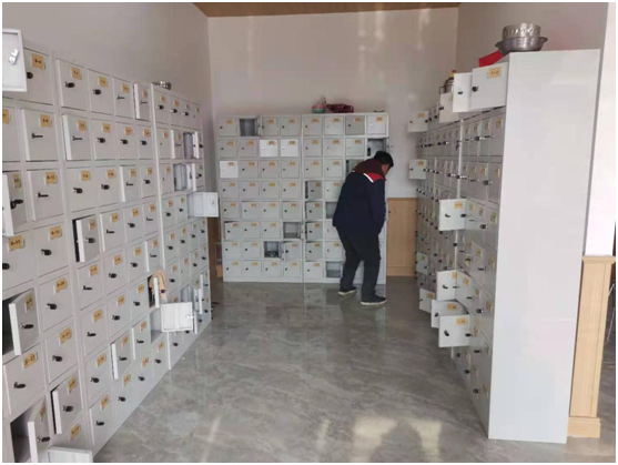 放餐具的地方之前都是2人一個(gè)小柜子,合得來(lái)的人就放在了一個(gè)餐柜。因?yàn)閮?chǔ)物柜不太夠餐柜頂層放的也有。進(jìn)到餐廳就會(huì)發(fā)現(xiàn)很多在墻上掛的也有袋子放的餐具。看著不是那么整潔?,F(xiàn)在新餐廳還為我們購(gòu)置了全新的儲(chǔ)物柜,一人一個(gè)放餐具的地方。比之前倆人一個(gè)餐柜漂亮了很多,再也不用怕位置不夠而發(fā)愁了。