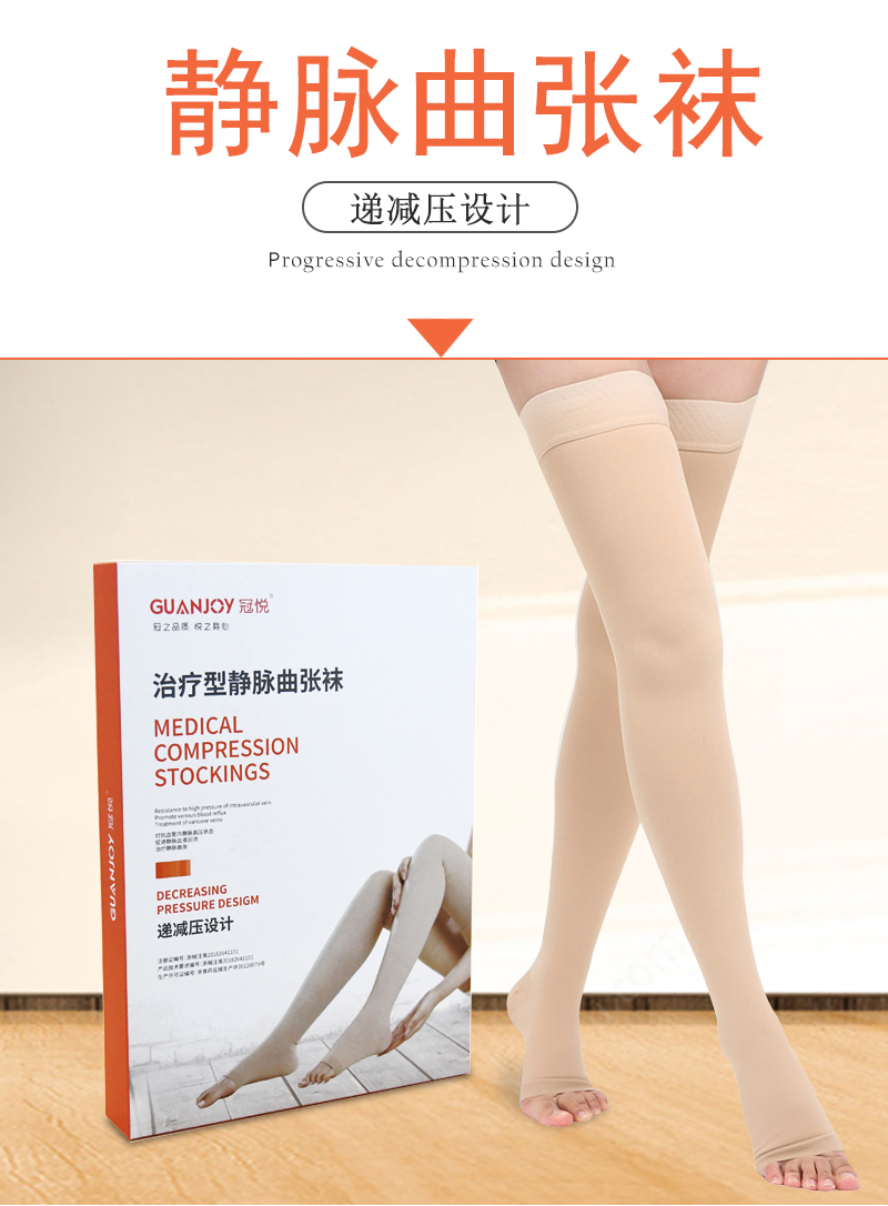 靜脈曲張襪是特殊設(shè)計的醫(yī)療產(chǎn)品,采用專業(yè)的壓力梯度設(shè)計,即壓力從腳踝向上逐漸減小。下肢靜脈回流有深、淺靜脈通道。醫(yī)用彈力襪可以壓迫淺靜脈,減少淺靜脈的血液回流,增加深靜脈的血液回流,同時可以減少靜脈泵和下肢全靜脈血容量,防止靜脈系統(tǒng)充血,減少靜脈瓣膜損傷引起的血液回流,增加血流速度。促進(jìn)靜脈血液回流心臟,防止下肢靜脈淤血,保證下肢靜脈血液循環(huán)良好,促進(jìn)患肢腫痛消失。