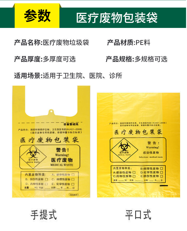 醫(yī)療廢物垃圾袋一般用什么材料?醫(yī)療廢物垃圾袋其實是用“全新聚乙烯PE”制作的,多為黃色,廣泛應(yīng)用于全國各醫(yī)療廢物處置點及醫(yī)院、診所等醫(yī)療場所。