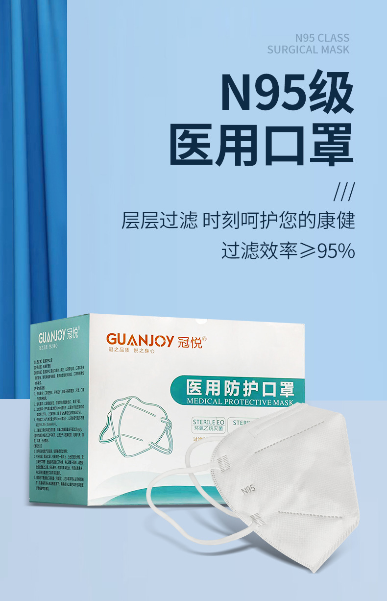N95不是產(chǎn)品名稱,是符合N95標(biāo)準(zhǔn)通過NIOSH審查的產(chǎn)品就可以稱為N95型口罩?!癗”表示“不耐油”,“95”表示暴露在規(guī)定數(shù)量的專用試驗(yàn)粒子下,口罩內(nèi)的粒子濃度要比口罩外粒子濃度低95%。其中95%這一數(shù)值不是平均值,而是最小值,所以實(shí)際產(chǎn)品的平均值大多設(shè)定在99%以上。