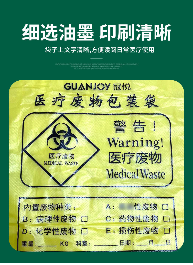 2、用途:醫(yī)療垃圾袋通常用于醫(yī)院、診所、美容院、藥店以及疫情防控檢測需求;生活垃圾袋則用于日常生活垃圾的分類收集與轉(zhuǎn)運(yùn);