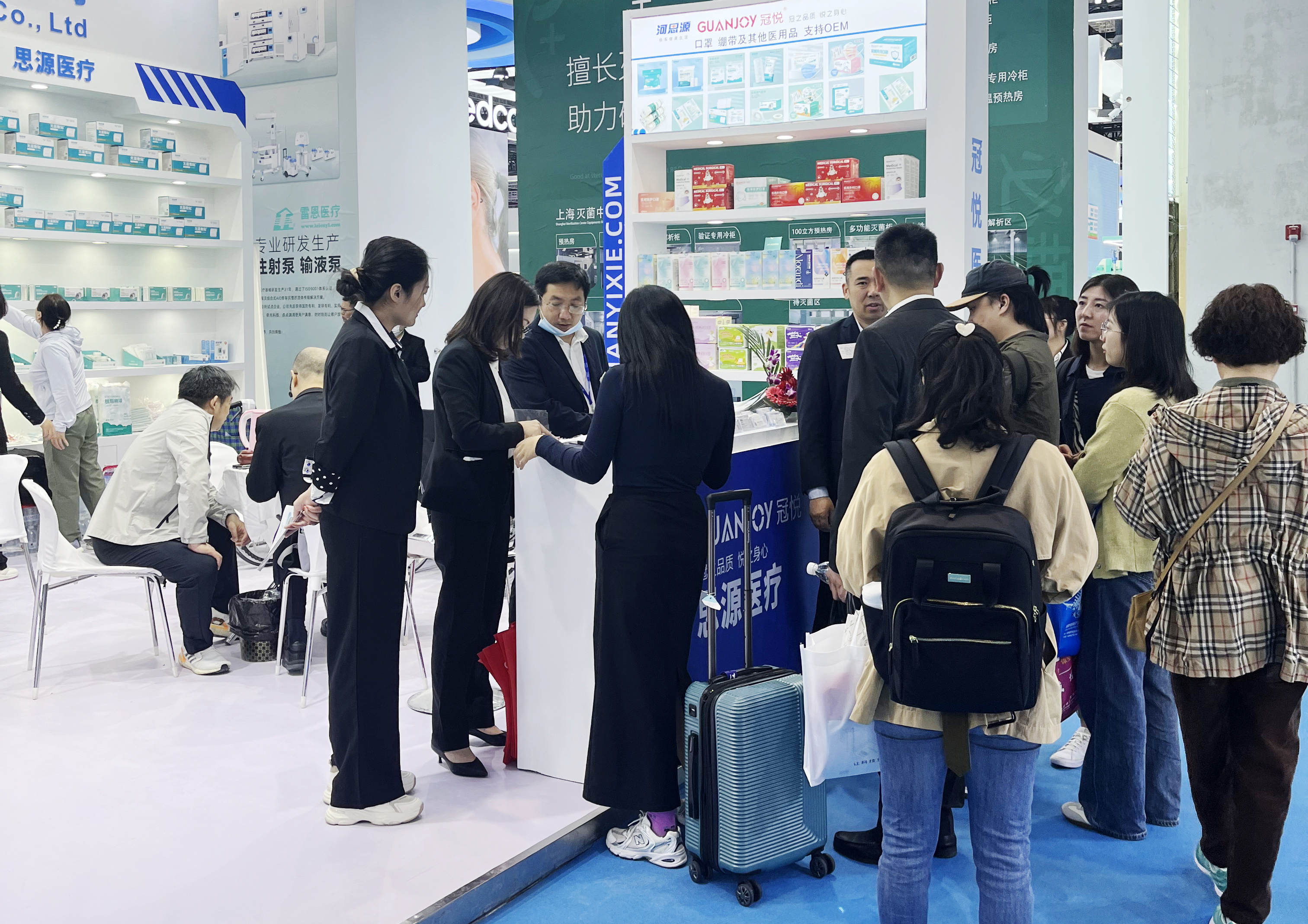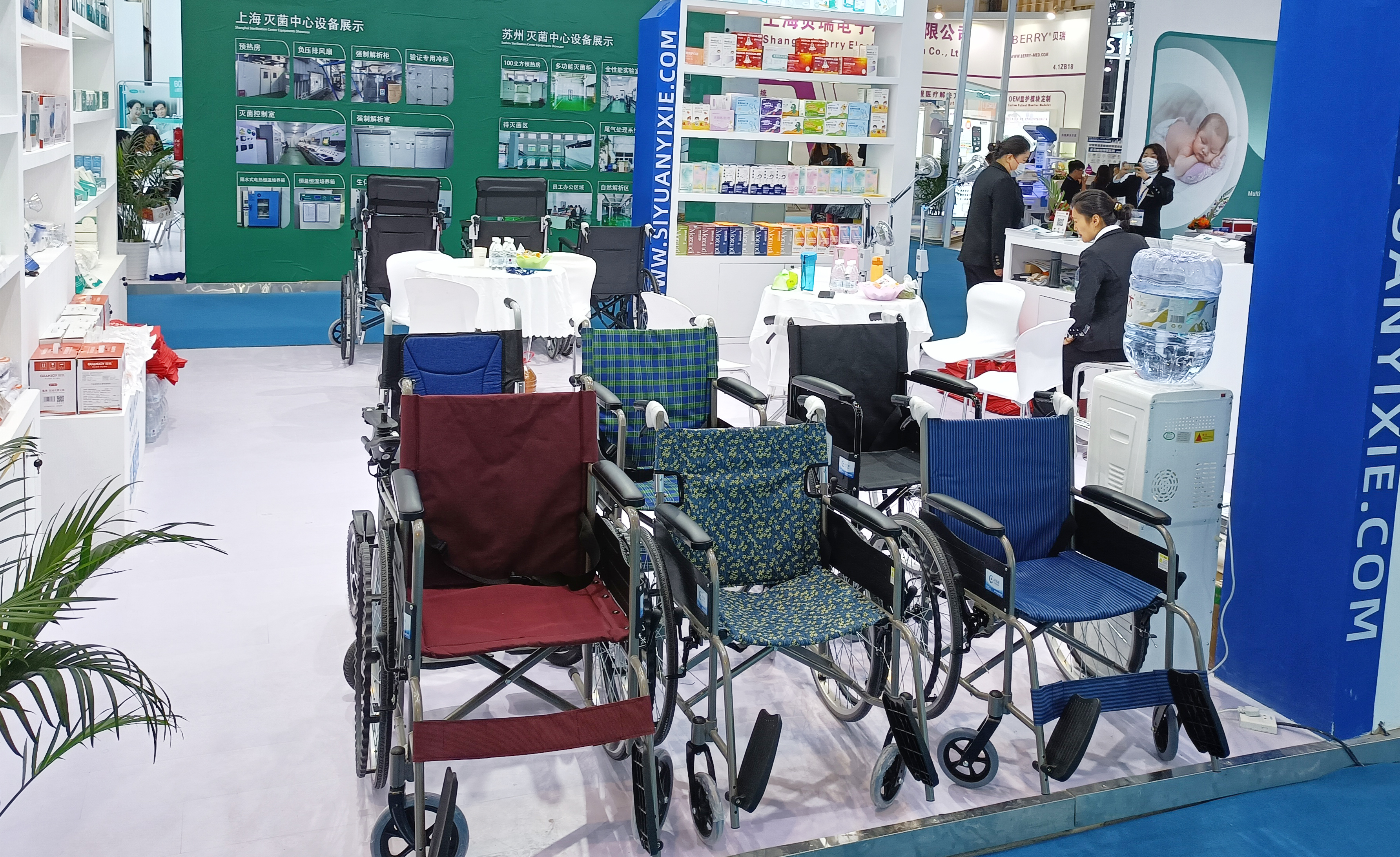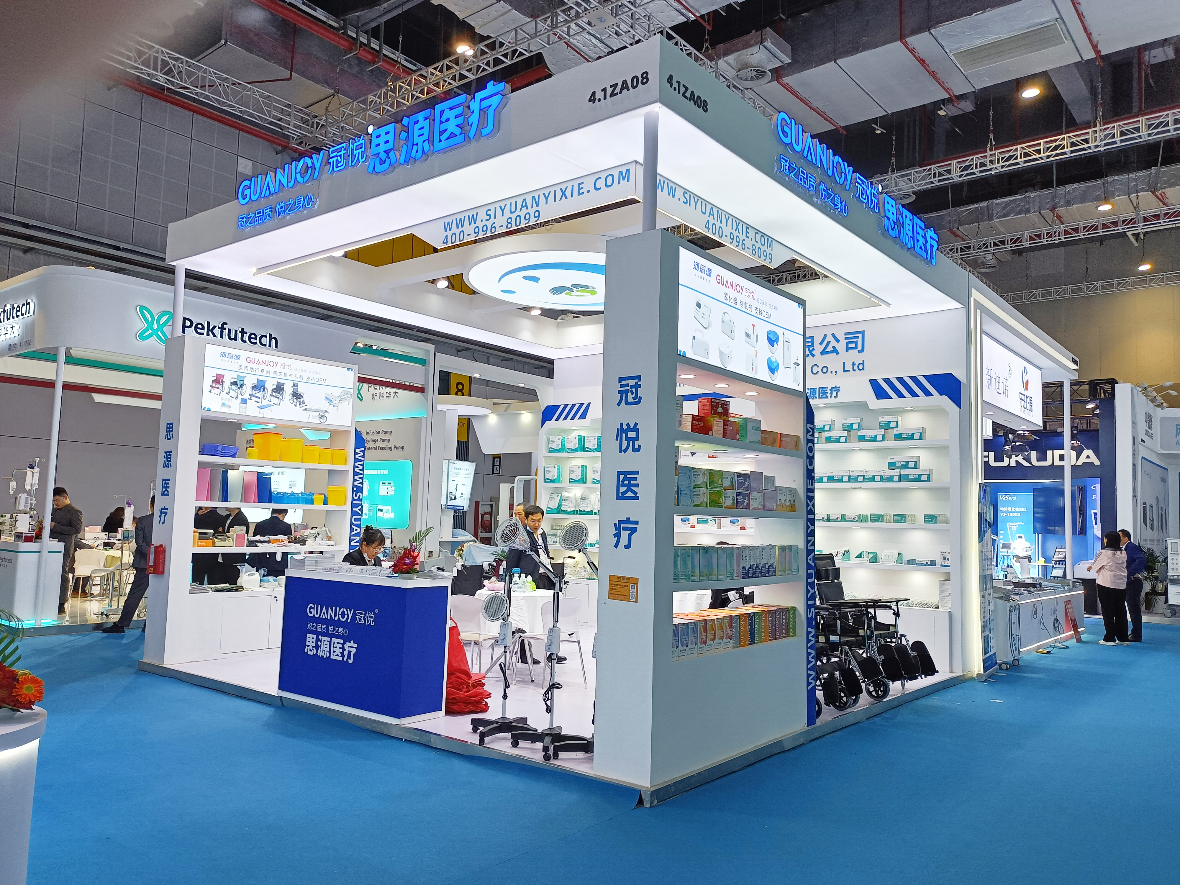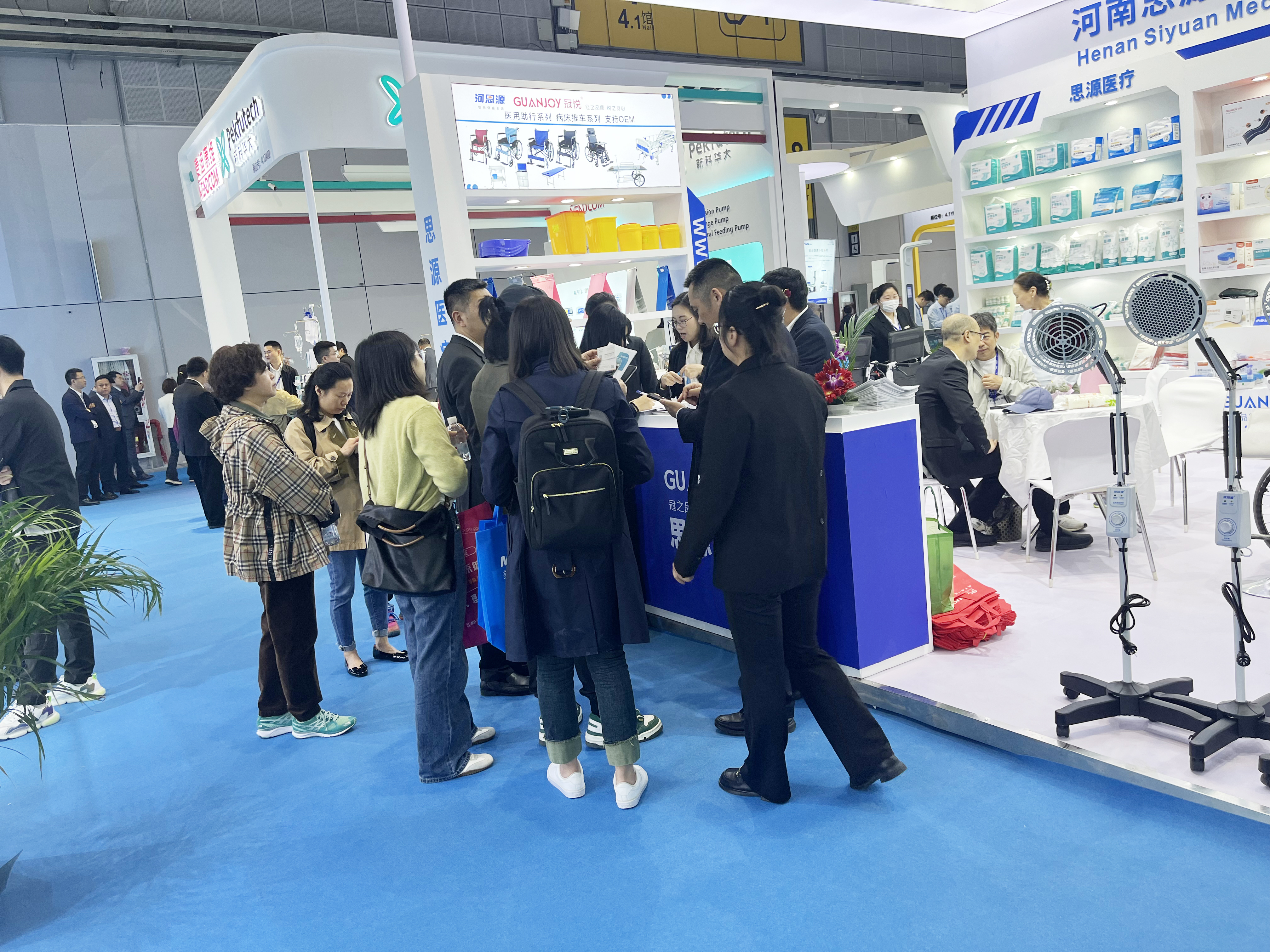 4.1館內(nèi),ZA08思源展廳非常整齊漂亮。步入展廳,思源醫(yī)療旗下冠悅、河思源等品牌產(chǎn)品齊聚,攜助行、耗材、防護(hù)、家庭護(hù)理、注塑、病床推車等6大系列的近百款產(chǎn)品亮相,為本次醫(yī)療器械博覽會(huì)增光添彩。
