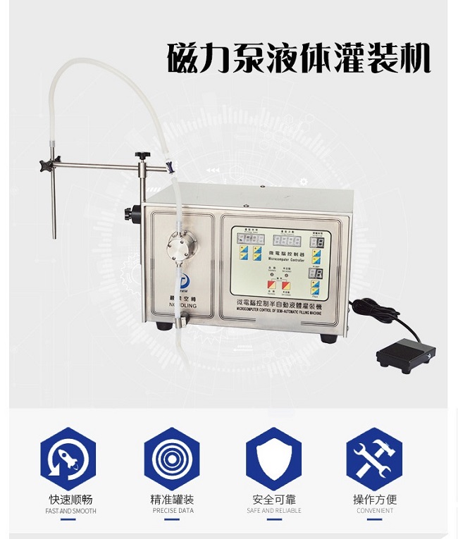 除此之外,液體灌裝機(jī)的上壓塊可以與泵頭本體分離,裝卡軟管方便,根據(jù)用戶需要,可串接多個(gè)泵頭,外形美觀、考究,結(jié)構(gòu)緊湊、流量寬泛。方便OEM方式配套應(yīng)用。具有定時(shí)功能,可實(shí)現(xiàn)半自動(dòng)分配、灌裝具有半電流鎖定功能。這樣的灌裝機(jī)滿足很多生產(chǎn)需要,現(xiàn)在以及未來迅捷機(jī)械還會(huì)研發(fā)出更多的灌裝機(jī)設(shè)備,讓我們來期待吧!