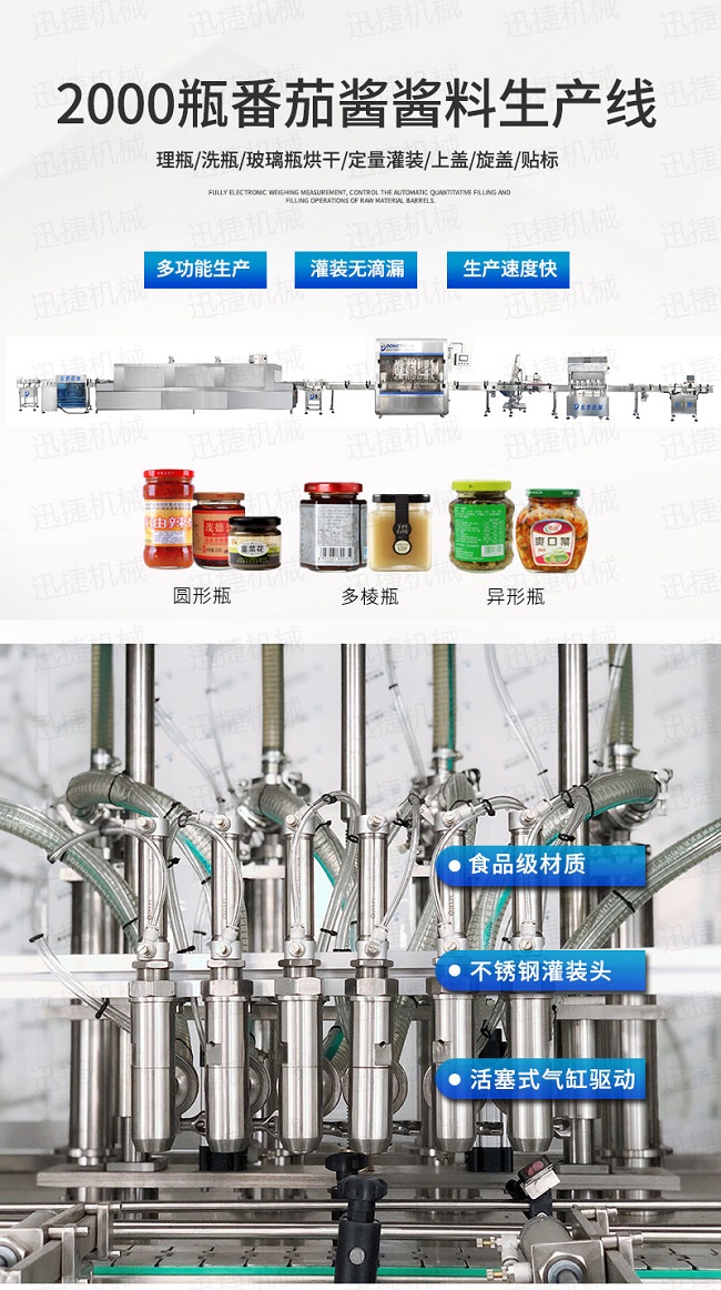 功能齊全,能夠針對不同的產(chǎn)品進(jìn)行有區(qū)別灌裝的番茄醬灌裝機(jī)備316L不銹鋼精制防滴漏灌裝頭,專為番茄醬的灌裝去設(shè)計的,通過性好,內(nèi)外精拋,促進(jìn)醬料工業(yè)的進(jìn)步,而醬料工業(yè)的發(fā)展又來作用于番茄醬灌裝機(jī)的更新?lián)Q代技術(shù)進(jìn)步,雄厚的經(jīng)濟(jì)技術(shù)實(shí)力助力與企業(yè)在市場中不斷的升溫不斷進(jìn)行技術(shù)的融合讓番茄醬灌裝機(jī)設(shè)備在外觀、材質(zhì)上有著更加美觀的特點(diǎn),在這個科技發(fā)展的年代,您還有什么理由不去選擇使用番茄醬灌裝機(jī)來保護(hù)自己的產(chǎn)品呢?