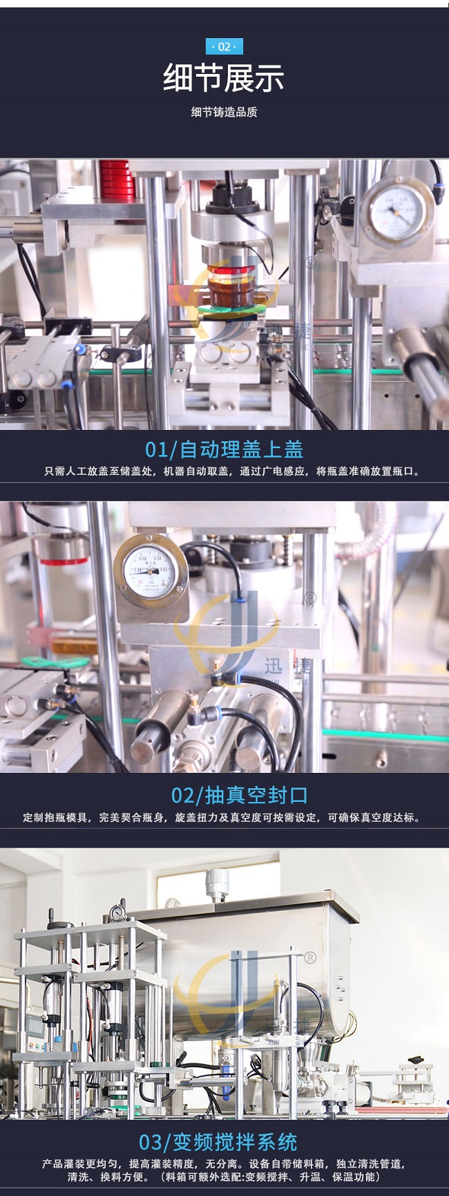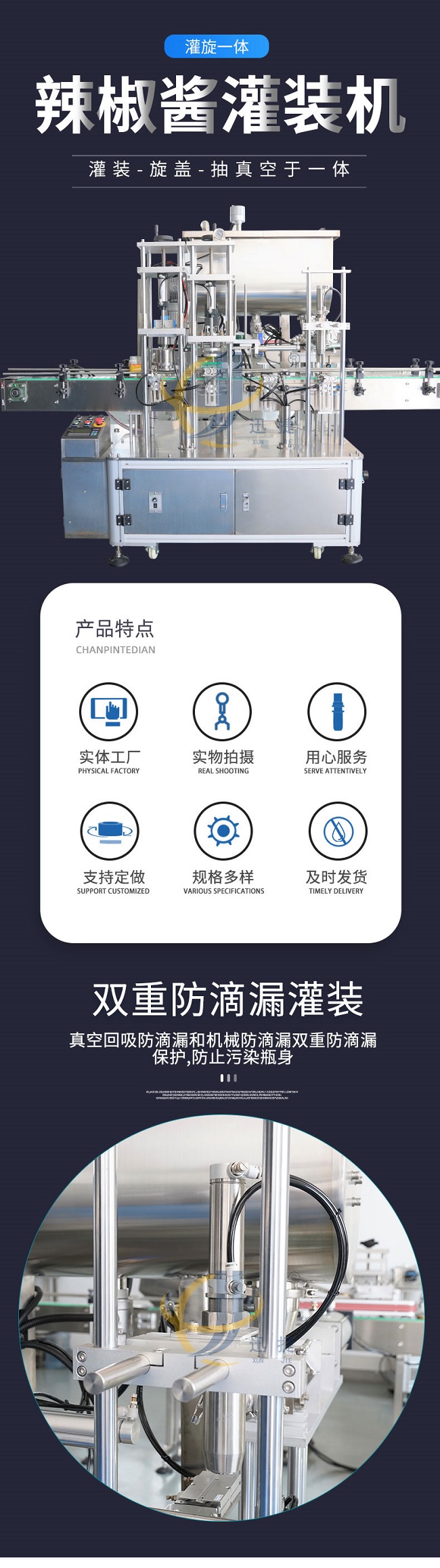 現在的生活節(jié)奏也比較快,牛肉醬也比較方便購買,網上、超市都有的售賣,所以許多的商家開始與全自動牛肉醬灌裝機廠家直銷進行合作,全自動牛肉醬灌裝機您知道如何選購嗎?這時候在灌裝顆粒比較大或者比較粘稠或比較干的醬料的時候,我們全自動牛肉醬灌裝機采用柱塞式進行計量,保證定量準確可靠,可用于多種瓶型,換瓶型只需要更換一套模具,模具更換的時間約為15分鐘左右,為了迎合社會發(fā)展的主題,全自動牛肉醬灌裝機效率高,幫助了很多企業(yè)解決了人工難題也更受消費者歡迎。