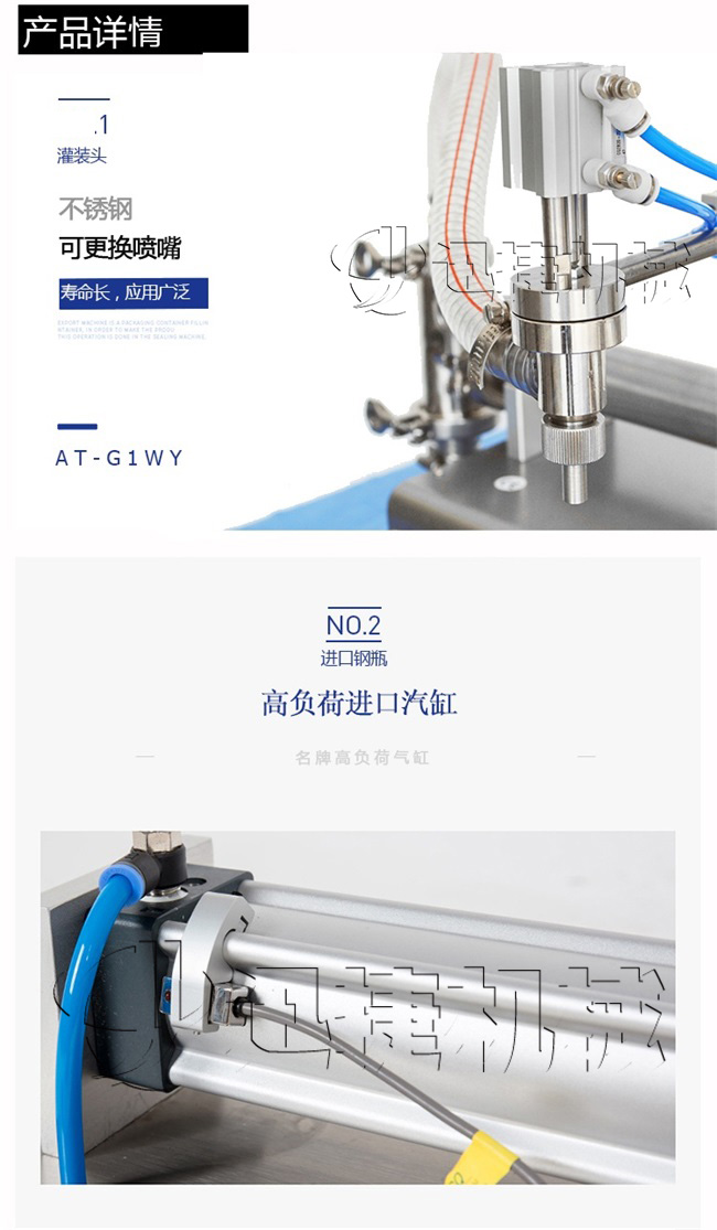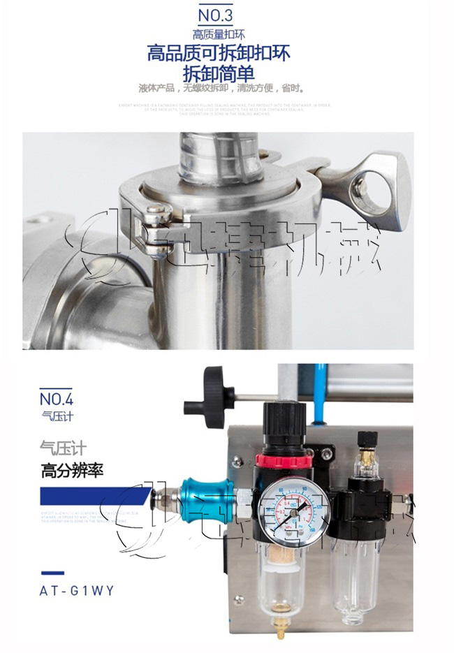 1.小型液體灌裝機(jī)氣動(dòng)部分均采用德國(guó)FESTO和日本SMC的氣動(dòng)元件;
